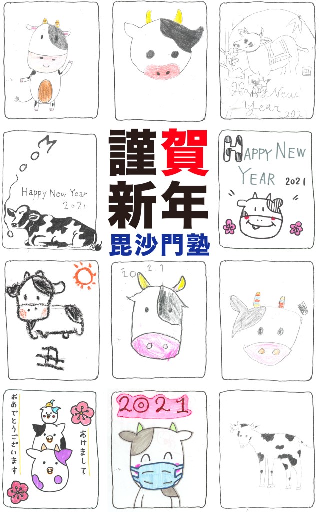 ・年末に塾生達が描いた丑のイラストをご紹介して、新年のご挨拶と致します。本年もどうぞよろしくお願いいたします。