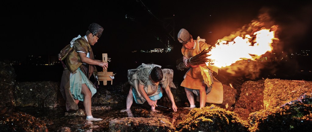 ・私は昨日未明に斎行された「和布刈神事」の写真記録をご奉仕して参りました。千八百年以上続く旧暦新年を祝う神事です。本来は「秘儀」として神社神官のみに伝えられていたものですが、太平洋戦争を体験した先々代の宮司様が戦後すぐに一般公開を決断なさったそうです。私は十数年前に初めてこの神事を参観しました。その時に撮影した写真を現宮司様が目に留めて下さり、それ以来、毎年写真撮影をご奉仕差し上げています。