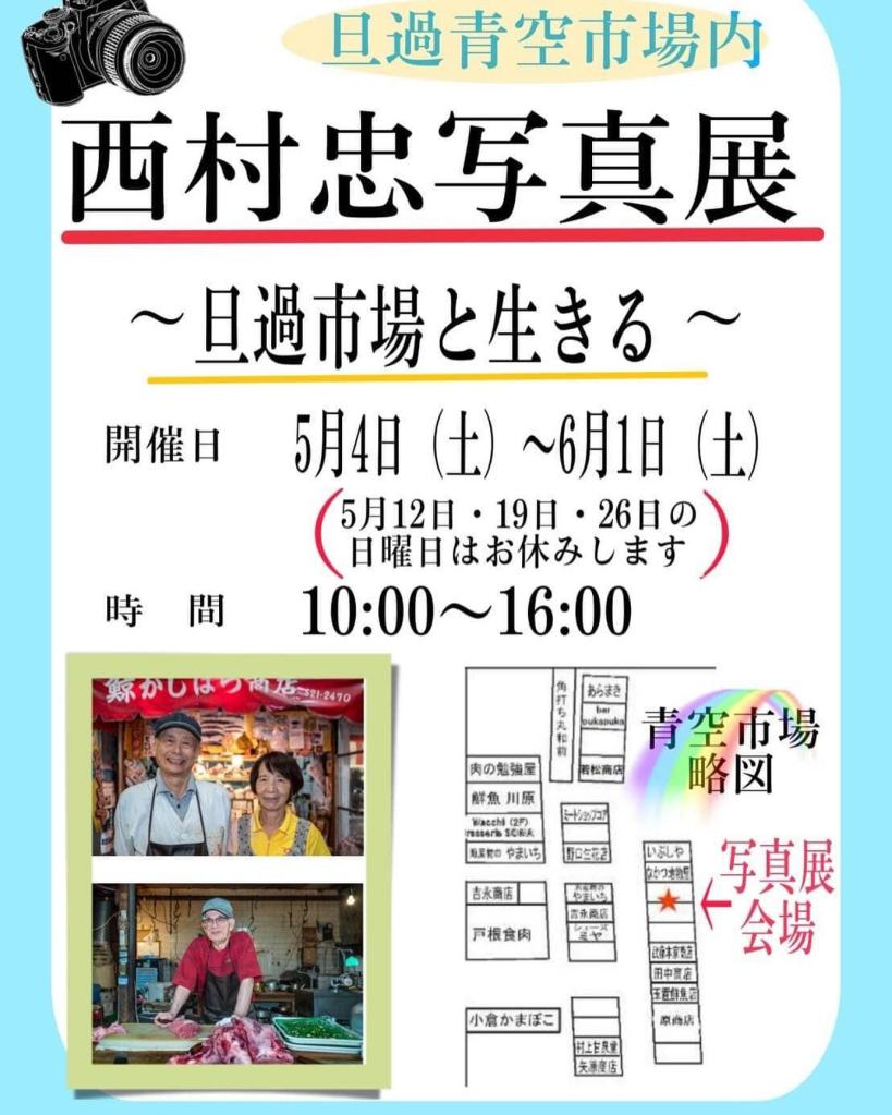 ●旦過市場写真展「旦過市場と生きる」を6/1まで旦過青空市場にて開催中です。NHKのニュース映像もどうぞ。
