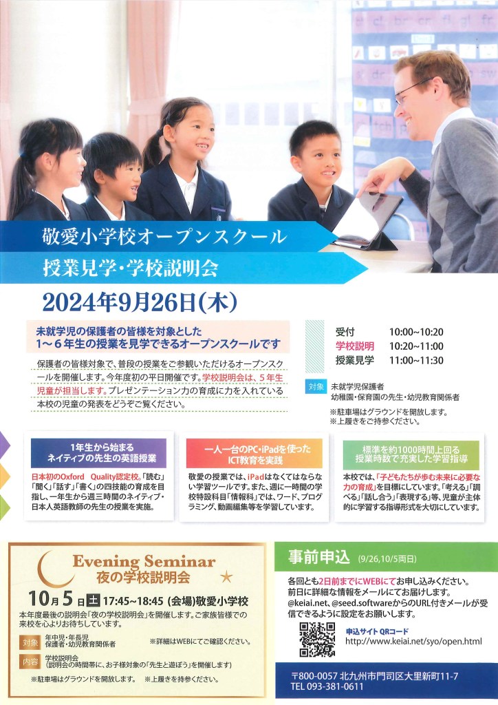 敬愛小学校オープンスクール、授業見学・学校説明会のご案内
